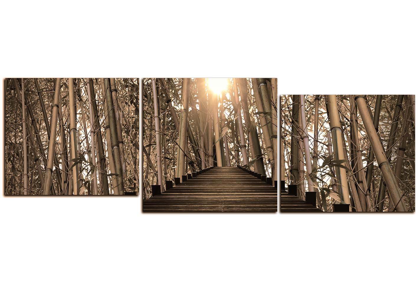 Obraz na plátně - Dřevěná promenáda v bambusovém lese - panoráma