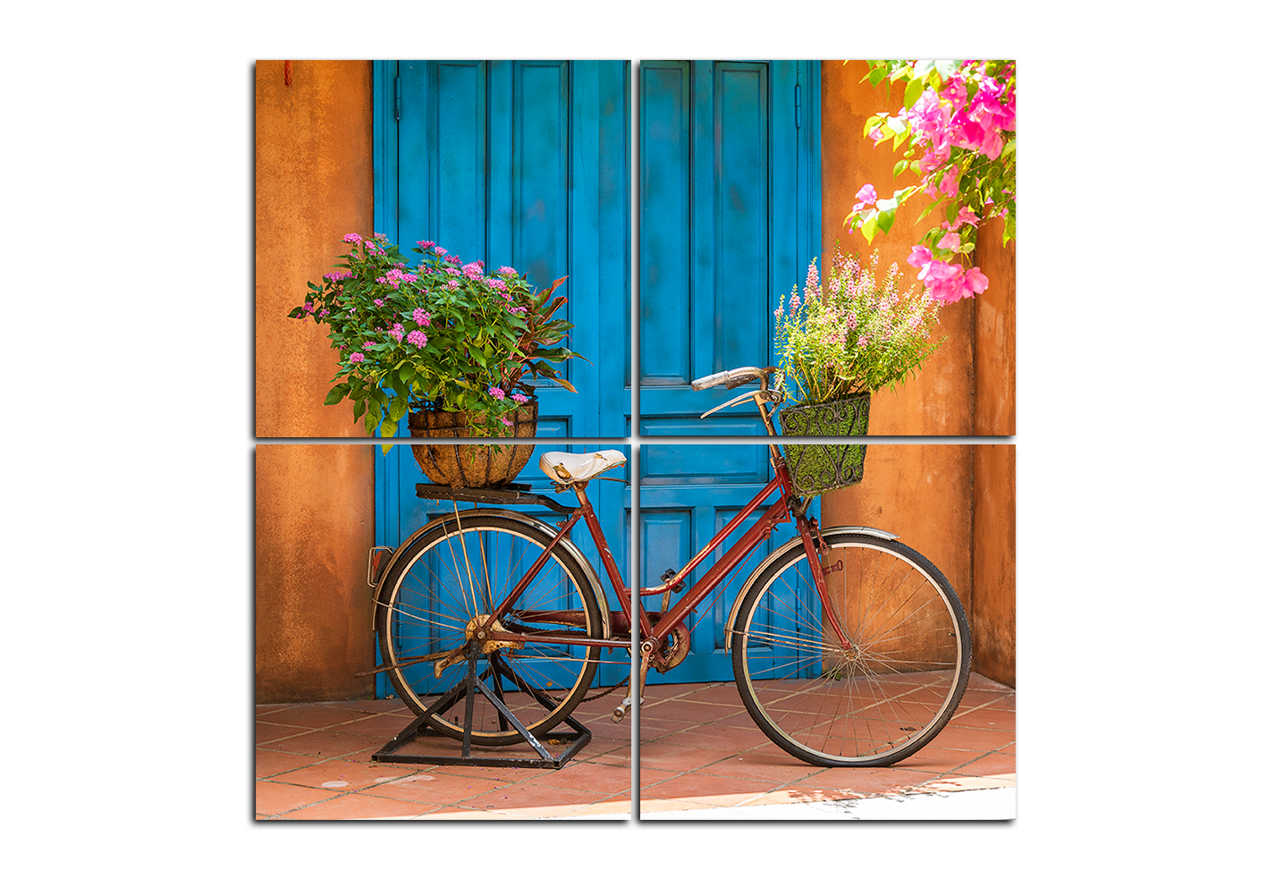 Obraz na plátně - Kolo s květinami - čtverec