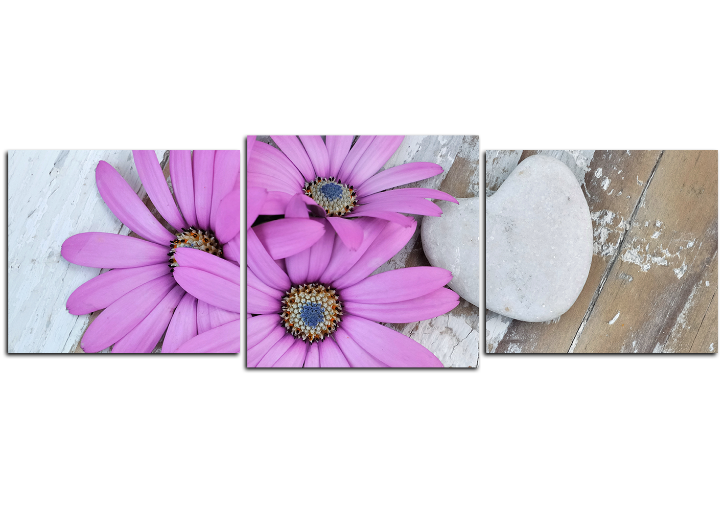 Obraz na plátně - Květy a kamenné srdce - panoráma