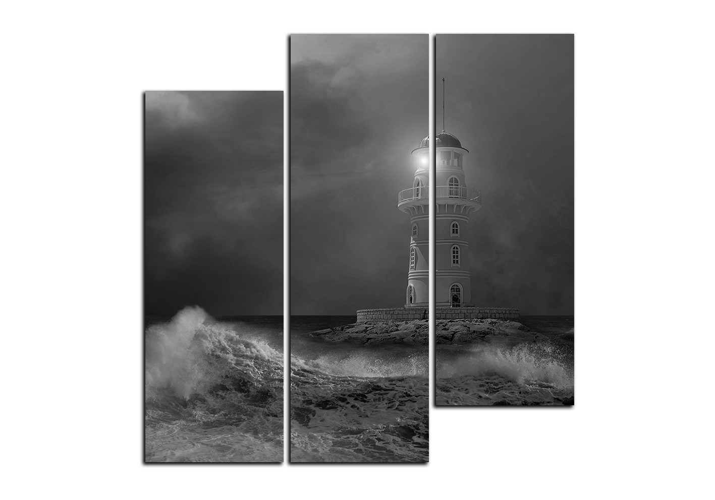 Obraz na plátně - Maják v moři pod oblohou - čtverec