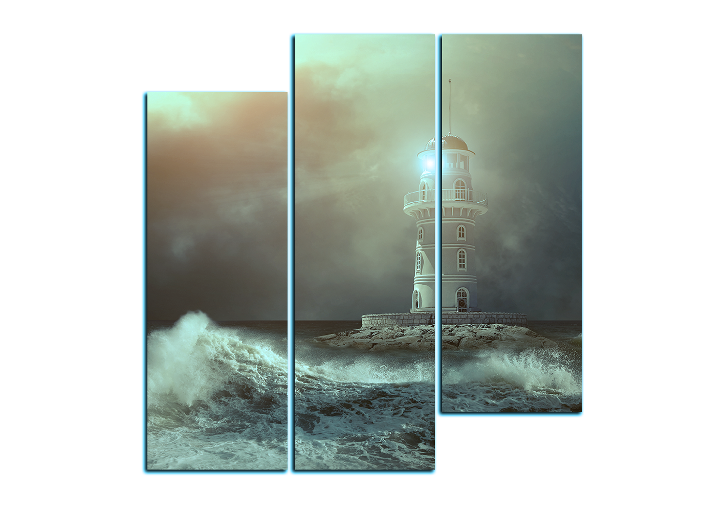 Obraz na plátně - Maják v moři pod oblohou - čtverec