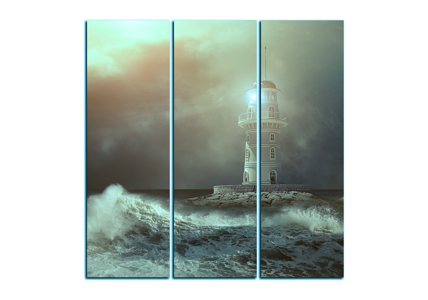 Obraz na plátně - Maják v moři pod oblohou - čtverec