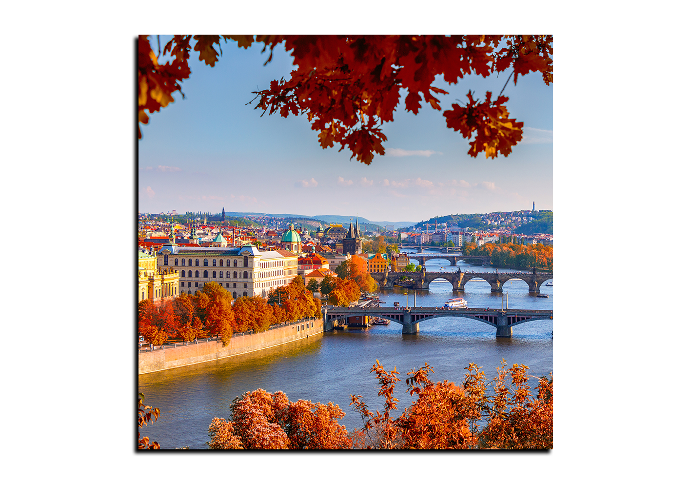 Obraz na plátně - Řeka Vltava a Karlův most - čtverec