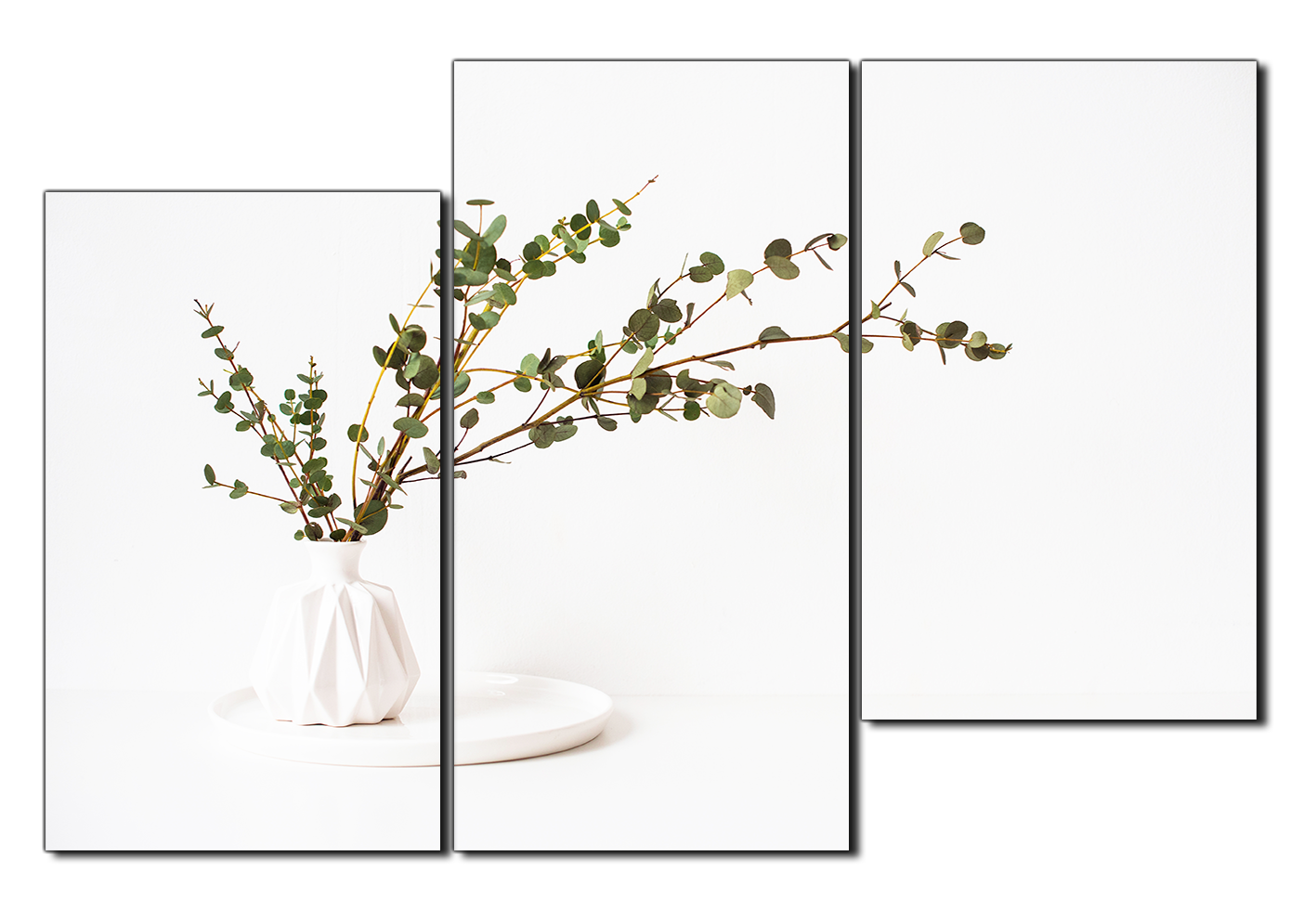 Obraz na plátně - Větev eukalyptu v bílé váze na bílém pozadí