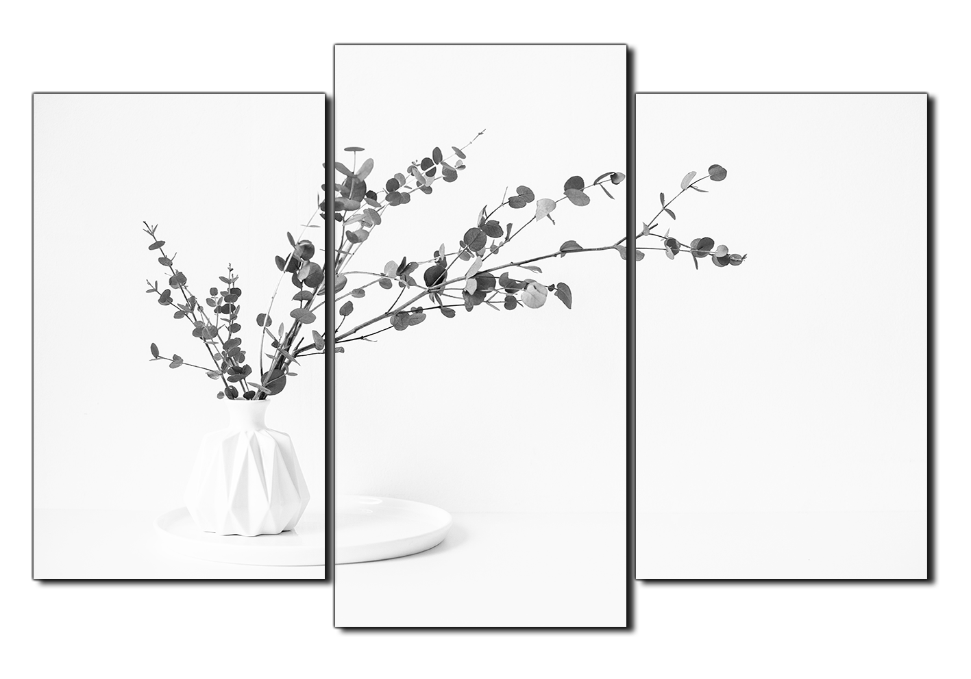 Obraz na plátně - Větev eukalyptu v bílé váze na bílém pozadí