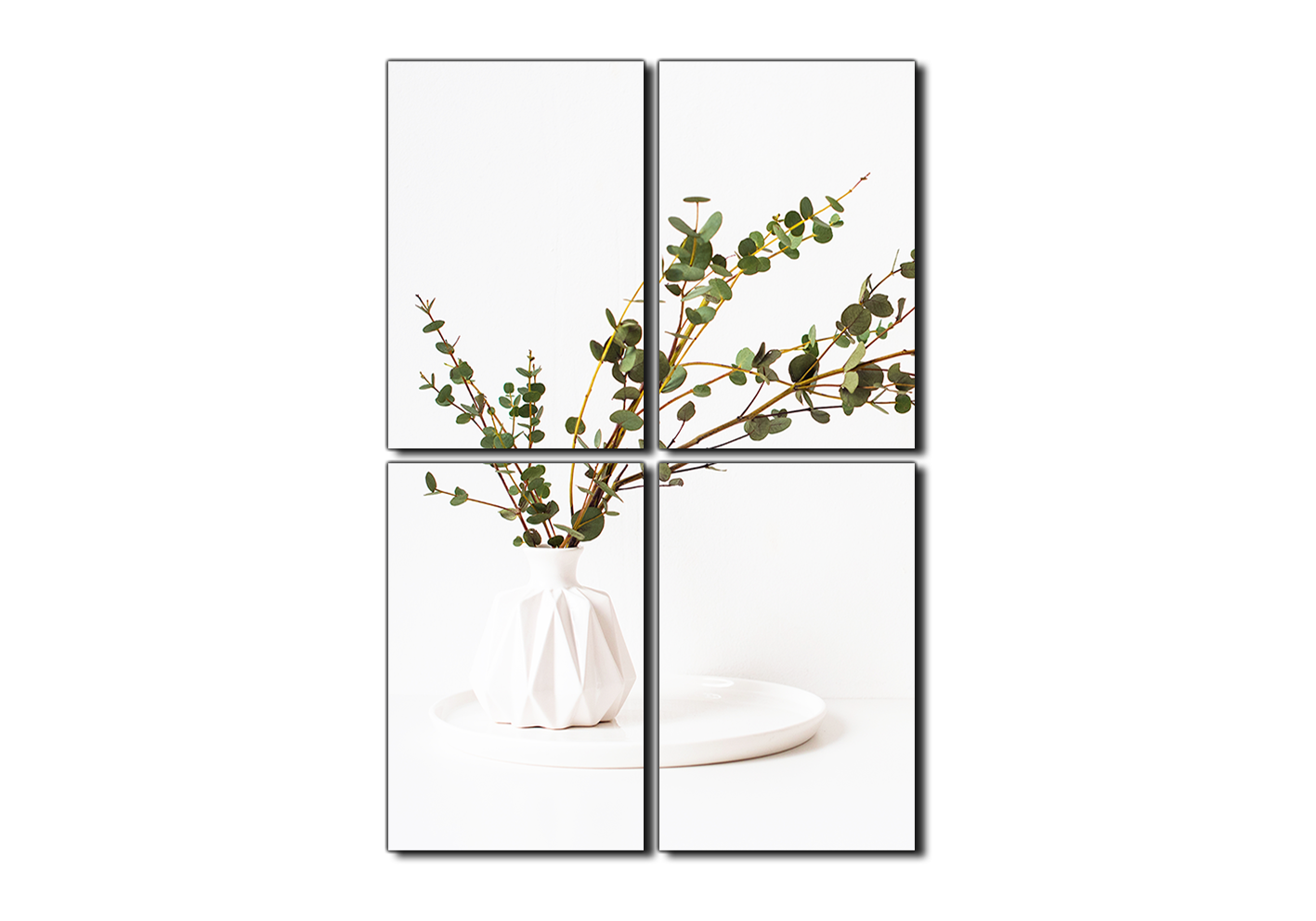 Obraz na plátně - Větev eukalyptu v bílé váze na bílém pozadí - obdélník
