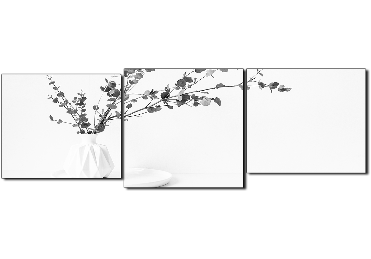 Obraz na plátně - Větev eukalyptu v bílé váze na bílém pozadí - panoráma