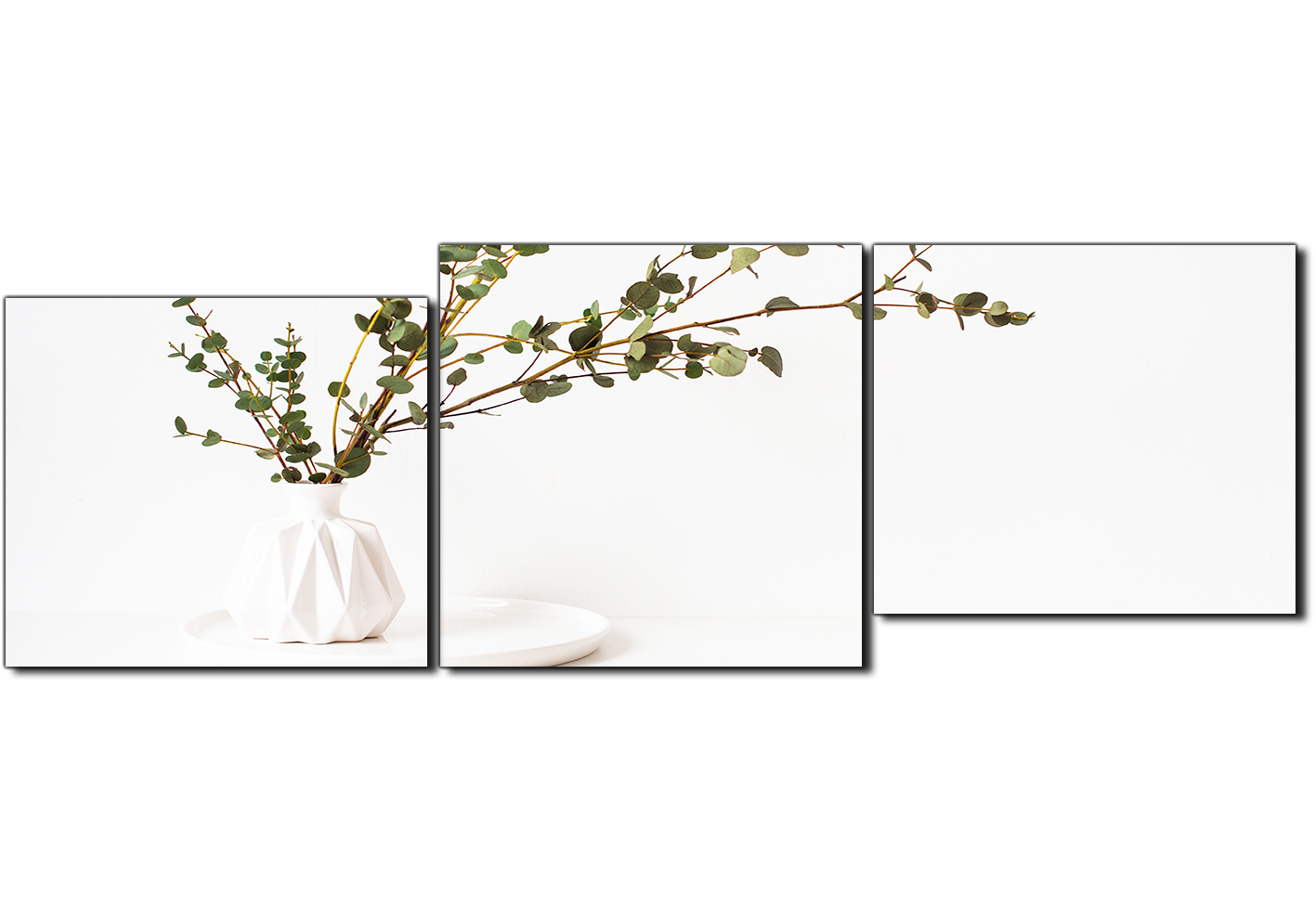Obraz na plátně - Větev eukalyptu v bílé váze na bílém pozadí - panoráma
