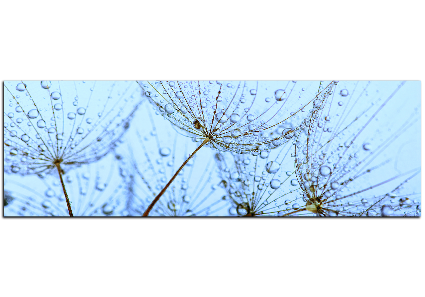 Obraz na plátně - Pampelišková semínka s kapkami vody - panoráma